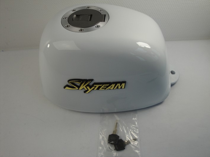 Brandstoftank,benzinetank Gorilla, wit met platte tankdop, Skyteam Skybongo, Jincheng Gorilla