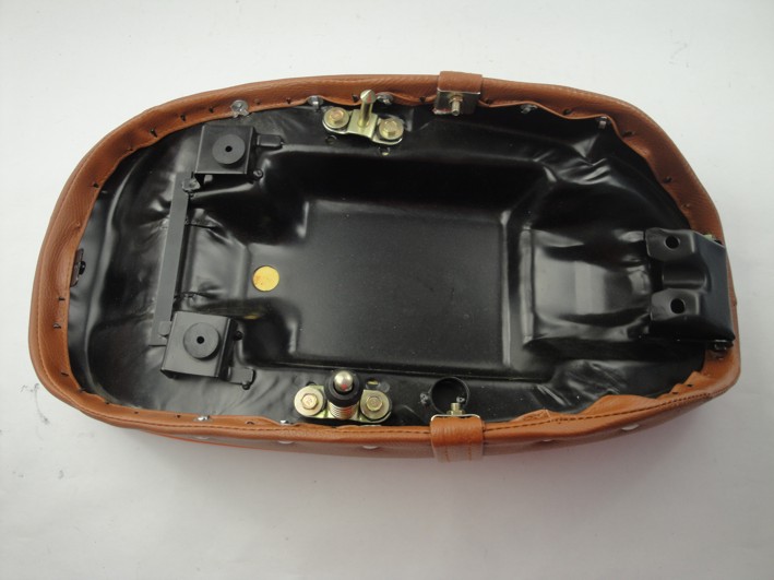 Buddyseat, zadel Skyteam Skymax, Dax model, 5.5L tank, bruin met oranje bies voor 50cc en 125cc origineel Skyteam 45100-14A10-2
